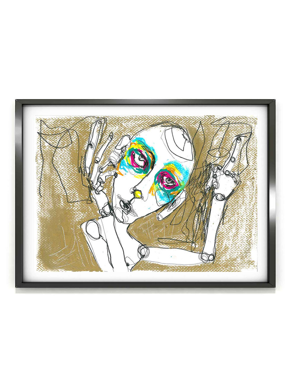 The print size is a standard A3 (11.75 x 16.5 inch, 297 x 420 mm). It is important to take into account that the dimensions indicated also include 2.5 cm of background (similar to the white background below the painting) + 2.5 frame width in each side. If you wish to order a frame without a background, please contact the studio.