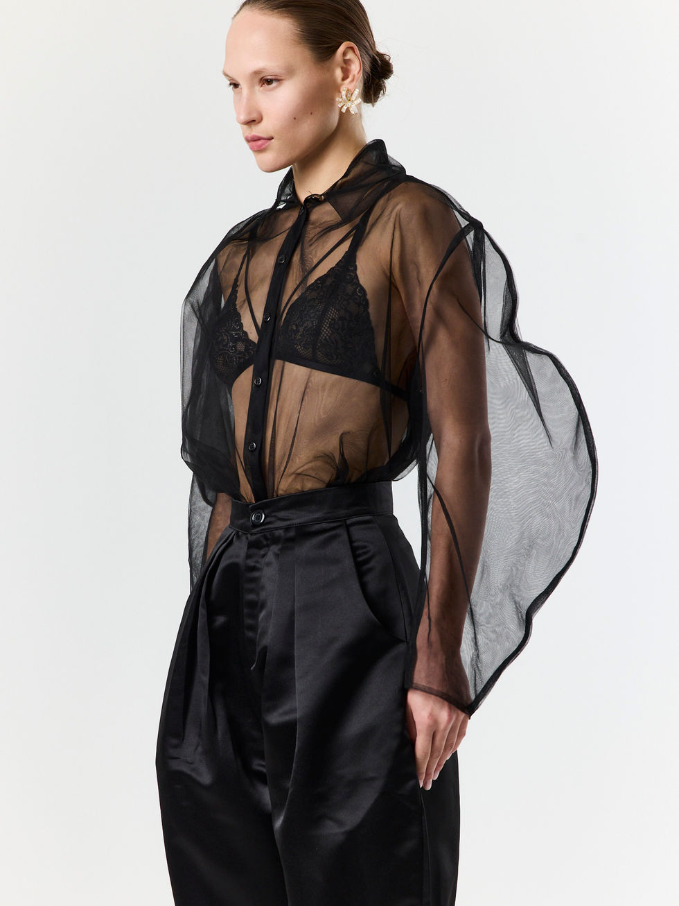 Equally striking with a crisp blouse or the Muse Denim Jacket, the Noir Satin Balloon Pants redefine versatility — a statement of effortless elegance that transitions seamlessly from day to night.