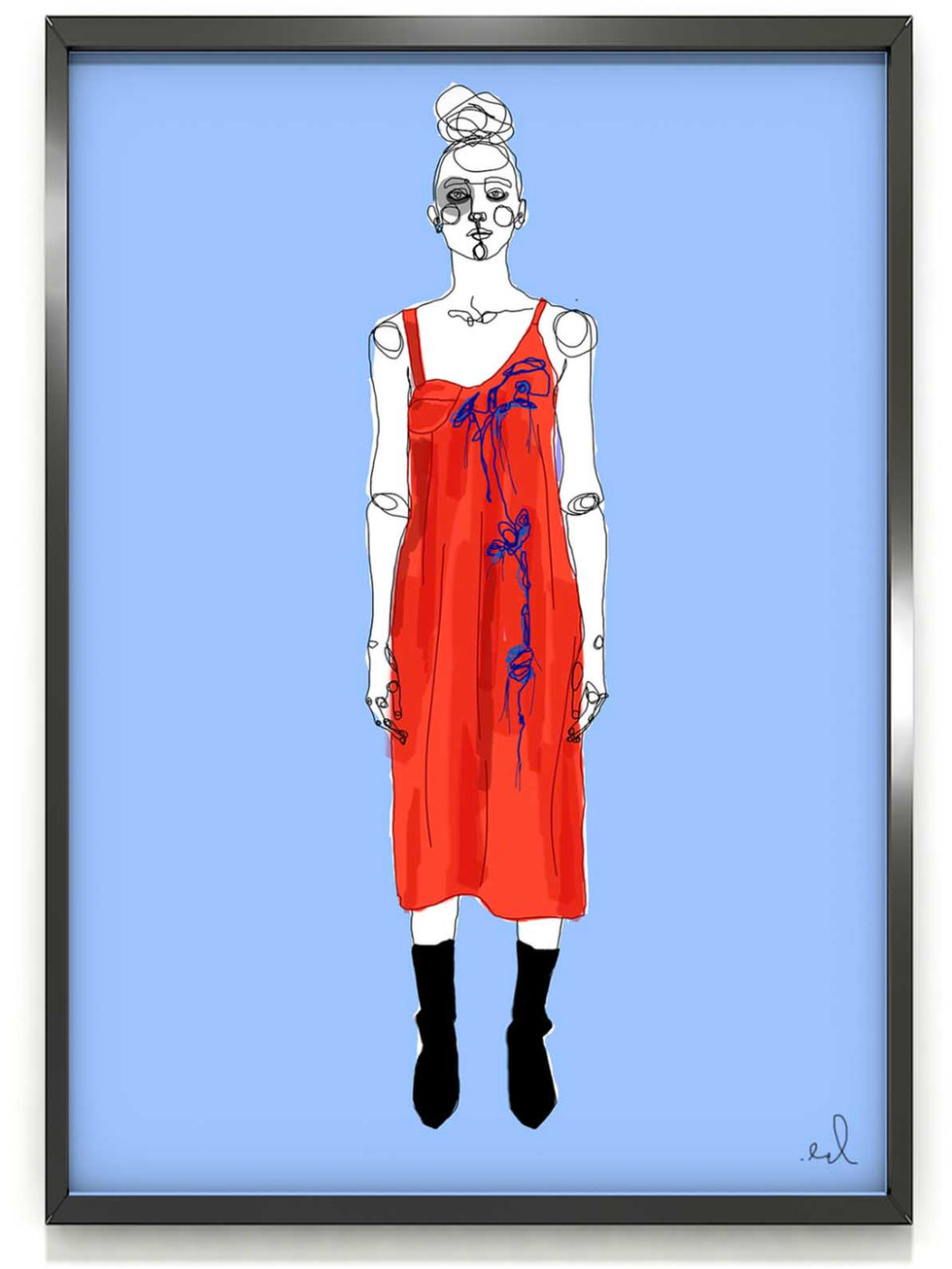 Fashion illustrations are the clearest link between the two worlds in which Shahar operates ? fashion and art. In these illustrations, Shahar paints the clothes she designs, giving the viewer the opportunity to get to know the garment from a different angle, feel the message through her stomach and connect with fashion from another point of view.