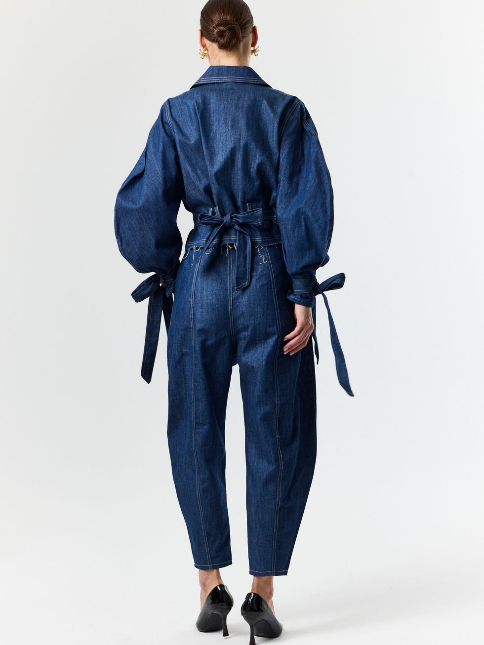 Elevate your denim wardrobe with the Round Jacket Jeans - a modern silhouette that blends relaxed structure with refined edge. Crafted from premium washed denim to perfectly complement the Round Denim Jacket, these jeans feature a high-rise waist and gently voluminous balloon legs that taper softly at the ankle for a sculpted yet effortless shape.